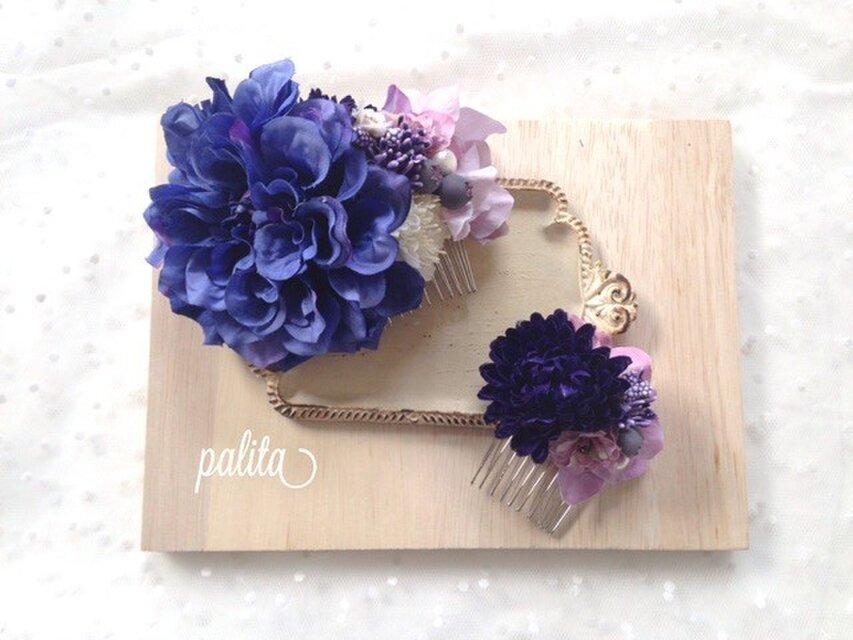 ブルーのダリアにダークブルーのマム。