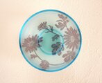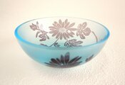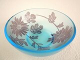 とっても綺麗なブルーのグラスに紫色の小菊を彫り込みました。