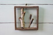 アンティーク調に仕上げた自家製フレームにドライフラワーや小枝をはめこみました。