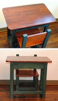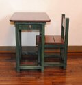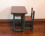 ★チークとグリーンの渋シブ☆昭和レトロの小さな勉強机と椅子★