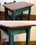 とてもカワイイ小さい木製の、レトロな机と椅子です。