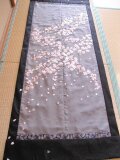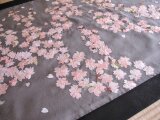 新春に向けて 桜の花をグレーの 小紋に花びらをたくさん ピンクの優しい濃淡で。陽当たりの良い窓辺でひと針ひと針が、心地良いのです。