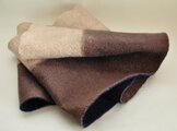 リバーシブルでどちらを表にしていただいてもお使いいただけますし、巻いていただくといろいろな色が出ますので、その重なりも楽しんでいただけるかと思います。