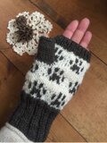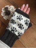 オフホワイトをベースにナチュラルブラウンで肉球柄を編み込みました