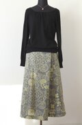 グレーに黄色の優しい色味のウールのお着物から、巻きスカートを作りました。