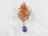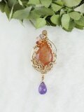 オレンジカラーのルチルクォーツを14kgfワイヤーで爪留めしました。