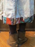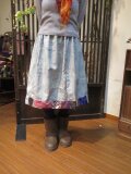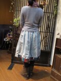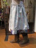 着物リメイク☆青緑の白大島deふんわりスカート☆裾に銘仙パッチ