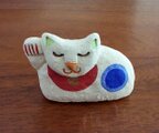 漆喰で造った招き猫。 4.0 × 6.5 × 3.0cm。