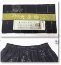 黒地にうす紫の椿柄の美保姿大島紬、
