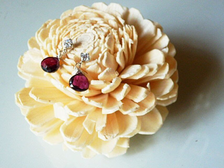1月の誕生石ガーネットのマロンシェイプカットを垂れ下げた