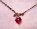 「Love」の文字の下に、スワロフスキーのハートが揺れるペンダントです♪