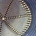 近づくとプリントだけど少し離れると編み込みされているような、楽しい作品です、気軽に着用出来る面白い帽子ですね~