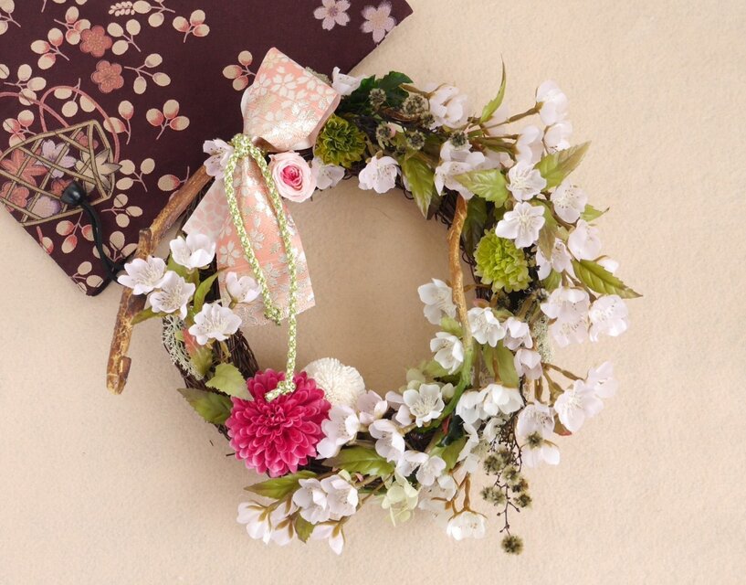 桜を待ちきれない方に是非飾っていただきたいリースです。