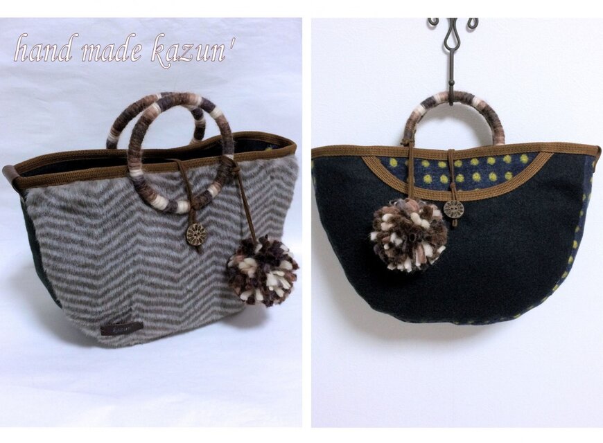 丸持ち手もモコモコ毛糸を巻いて、心を込めて作った1点モノ。全体的に「○」をイメージして作りました。