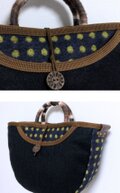 表と裏で全くデザインの異なるリバーシブル半月型バスケットトートです。