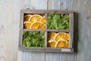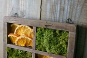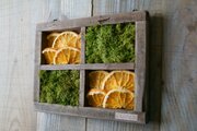 アンティーク調に仕上げた自家製フレームにドライオレンジとプリザーブドモスを貼り付けました。