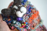 木のビーズ、プラスティックのビーズ、羊毛フェルト等異素材のものを組み合わせ、他ではなかなか見かけないものを作ってみました。