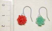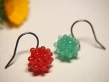 いちご色と青緑 1粒ずつで さりげなく個性的なピアスです