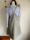 なめらかな光沢感のあるリネン100の生地、色はグレージュ、ナチュラルとベーシックの間の中間色で品のある色目です。