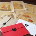 6種類の絵柄を各一枚ずつの便箋6枚と、金・赤・ホワイトクラフト紙の封筒3枚の豪華なセットです。