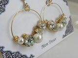 こちらコットンパール(きなり8mm、6mm)とスワロフスキービジュー(クリソライト、クリスタル)を使用致しております。