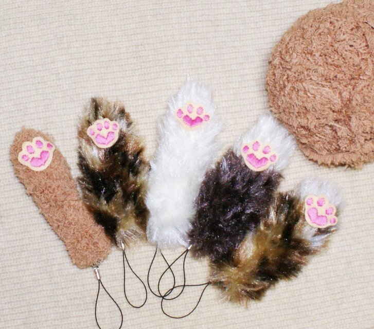 バッグや鍵、帯につけてぶらぶらと可愛いく揺れるニャン手・ワン手です。