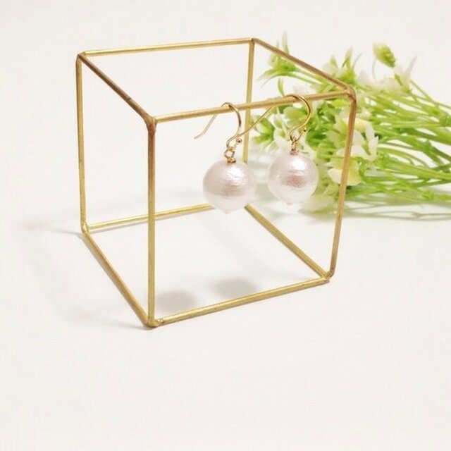 大粒のコットンパールの一粒シンプルピアス/イヤリングです。