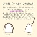購入後紐を抜いていただくか、購入時備考に「片方紐希望」と入れていただければ、片方紐の形で送らせていただきます。