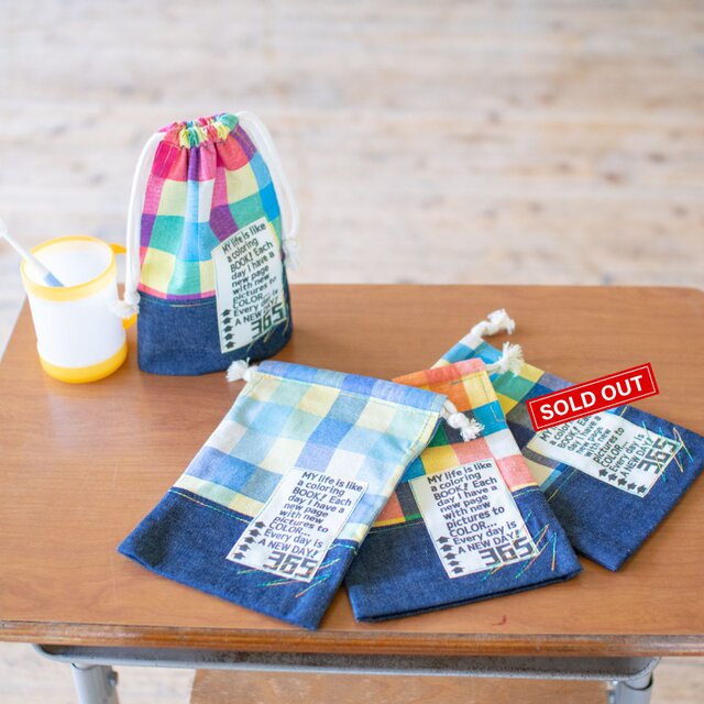 カラフルチェックのコップ袋:歯ブラシも入るサイズ |サイズ変更対応