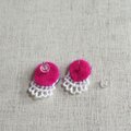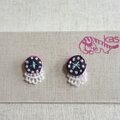 8オンスインディゴデニムの布に1点1点手で刺繍をし、レースを組み合わせたピアスです。