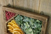 アンティーク調に仕上げた自家製フレームにドライフラワー(ペッパーベリー、アジサイ、センニチコウ、オレンジ)を貼り付けました。