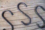 この作品は、真っ赤に焼けた鉄を叩いて、1つ1つ 手作業で仕上げたものです。同じサイズのものは、ありません。ハンマーの打痕が残っており、使い込んだ様な質感がでています。洋服屋さんのディスプレイにも使えるS字フックは使い方次第で色々な雰囲気を演出できますので、お気に入りのもので自分流にアレンジしてみてください。