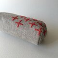 リネンの生成り生地にクロス・ステッチで十字架を刺繍しました。
