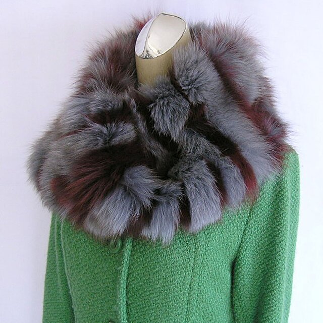 ¶ new antique fur ¶ 希少ワインレッド/グレーFOXnejiriスヌード「リエナ」再販