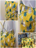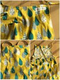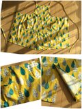綿麻キャンバスの鮮やかな黄色い地に、さまざまな模様が描かれたしずくが可愛らしい生地です。