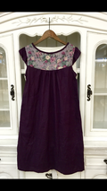 ☆yuwaさんの素敵な薔薇柄生地に合わせて中厚のパープルリネン100%、お袖はフリルのノースリーブヨークギャザーワンピースになります。
