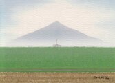 クリーンセンターを挟み、堤防の先にある山を描きました。