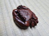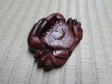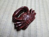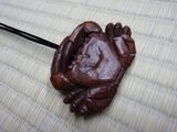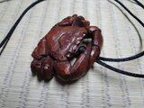 和風の木彫りペンダント、このモチーフは海辺に遊ぶ、小さな磯ガニ。