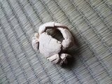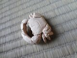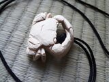 和風の木彫りペンダント、このモチーフは海辺に遊ぶ、小さな磯ガニ。