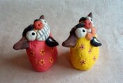 カラフルなフラワー柄の一対の漆喰シーサー。 6.0 × 6.5 × 4.0cm(1体)