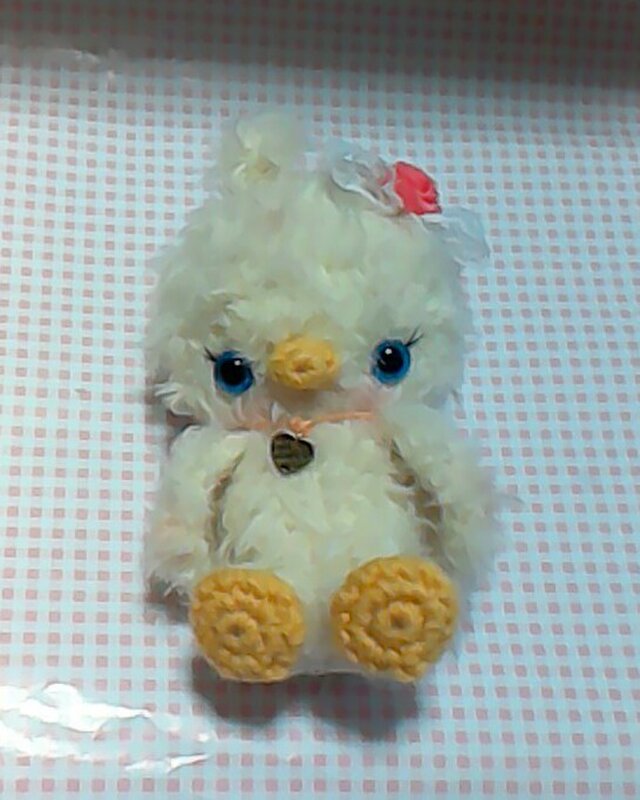 ふわふわのとても柔らかい毛糸で編んだひよこちゃんです。