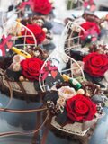 お取扱いのご注意 プリザーブドフラワーは水をあげる必要はありません。 水がかかる場所や湿度の高い場所に置くことは、色漏れや染みの原因となりますのでお避けください。 エアコンの風が当たるなど乾燥した場所は 花が壊れやすくなる原因となります。 衣服・壁等に直接触れると色移りする場合があります。 色が付着した場合は すぐに常温の水と石けんをつけたスポンジなどで軽くたたいてください。 直射日光は色あせの原因となりますので、日のあたらないところに保管してください。 ワイヤー等も使用しております。ペットやお子様が口に入れたりしないようにご注意ください。