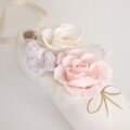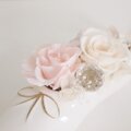 陶器のトゥシューズに柔らかいピンクとシャンパンホワイトのローズを合せました。