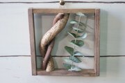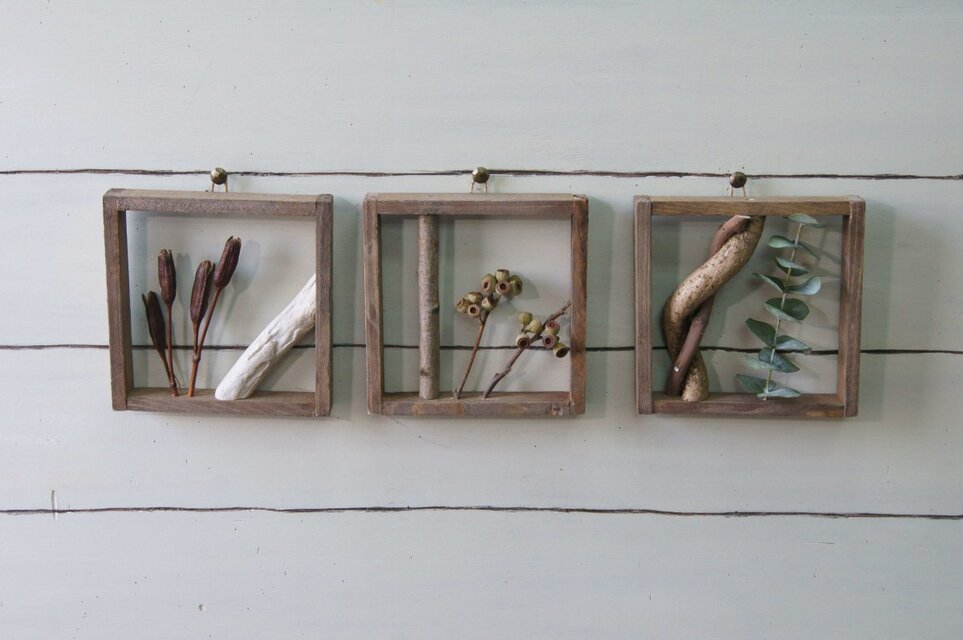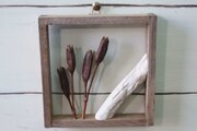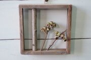 アンティーク調に仕上げた自家製フレームにドライフラワーや小枝をはめこみました。