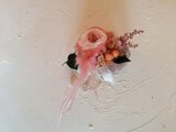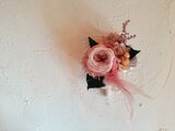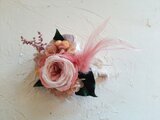 プリザーブドフラワーのオールドローズやアジサイ、アイビーなど本物の植物を使用したコサージュです。