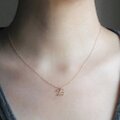 届きました。 大き目のイニシャルで でも仰々しくなくシンプルで素敵です。 ロングなので付け外し頭からかぶれるのでとっても楽です。 高齢になると小さな留め具で結構大変なことがあります。 近々友人たちと京都に行きますので早速着用します。 楽しみです。 ありがとうございました。
