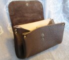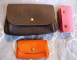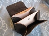 作品は1枚革を折りたたんで金具留めにした小さなポーチです。