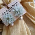 淡いブルーに染色したオーガンジーで作ったデージーとコットンパールでイヤリングを作りました。