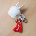 とても、可愛らしく作って頂けて、満足です。ウサギの鼻も、糸で可愛らしく付いていたのが嬉しいです。 毎日、キーホルダーにつけて、出掛けます。