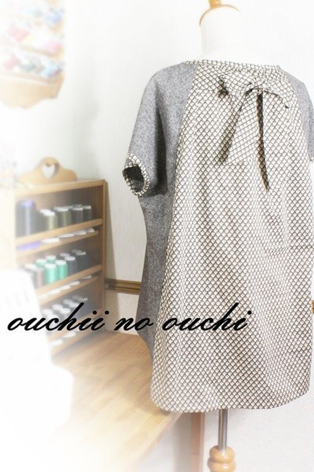 フレンチ袖プルオーバータイプでリバティ後ろリボンの後ろ下がりカットソーブラウスをお作りしました。